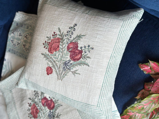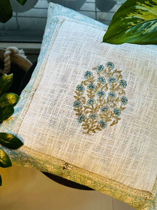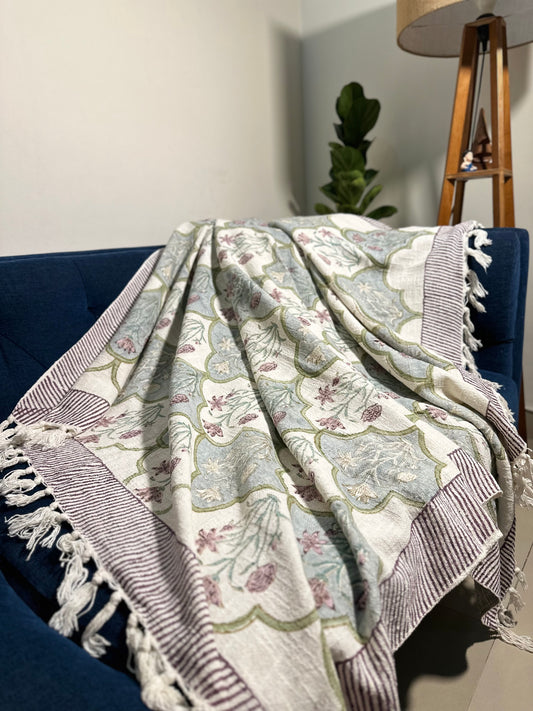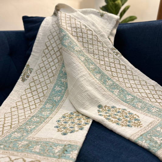Jharoka Mosaic Jal Hand Block Printed 100% Cotton Jute Sofa Throw