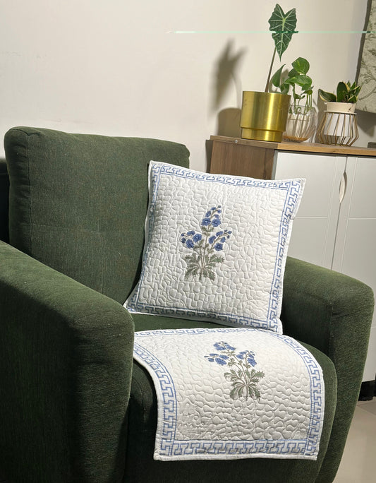 Neelam Bagh Hand Block Print Cushion Covers - Quilted (Set of 2)